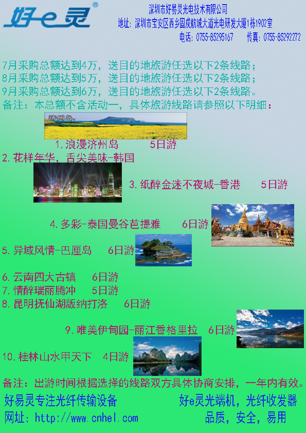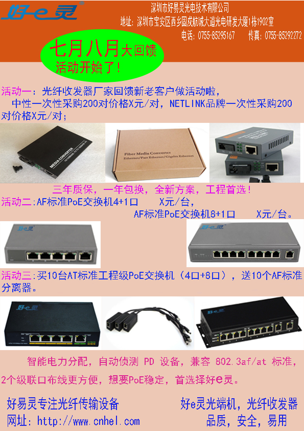 光纖收發(fā)器廠家回饋新老客戶做活動(dòng)啦,活動(dòng)詳情請(qǐng)咨詢公司銷售經(jīng)理。